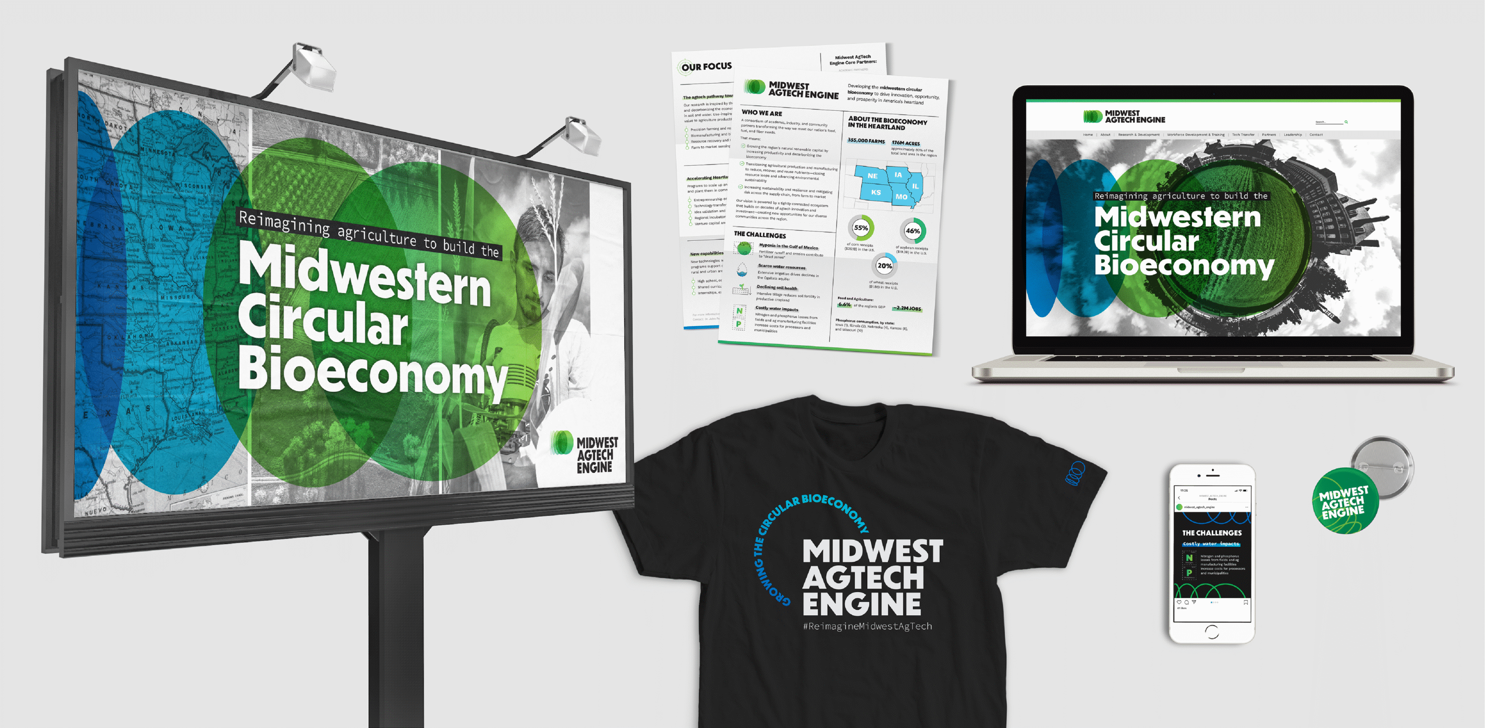 Build a visual identity system for a multi-university agtech grant initiative to illustrate collaboration and convey legitimacy if funded.