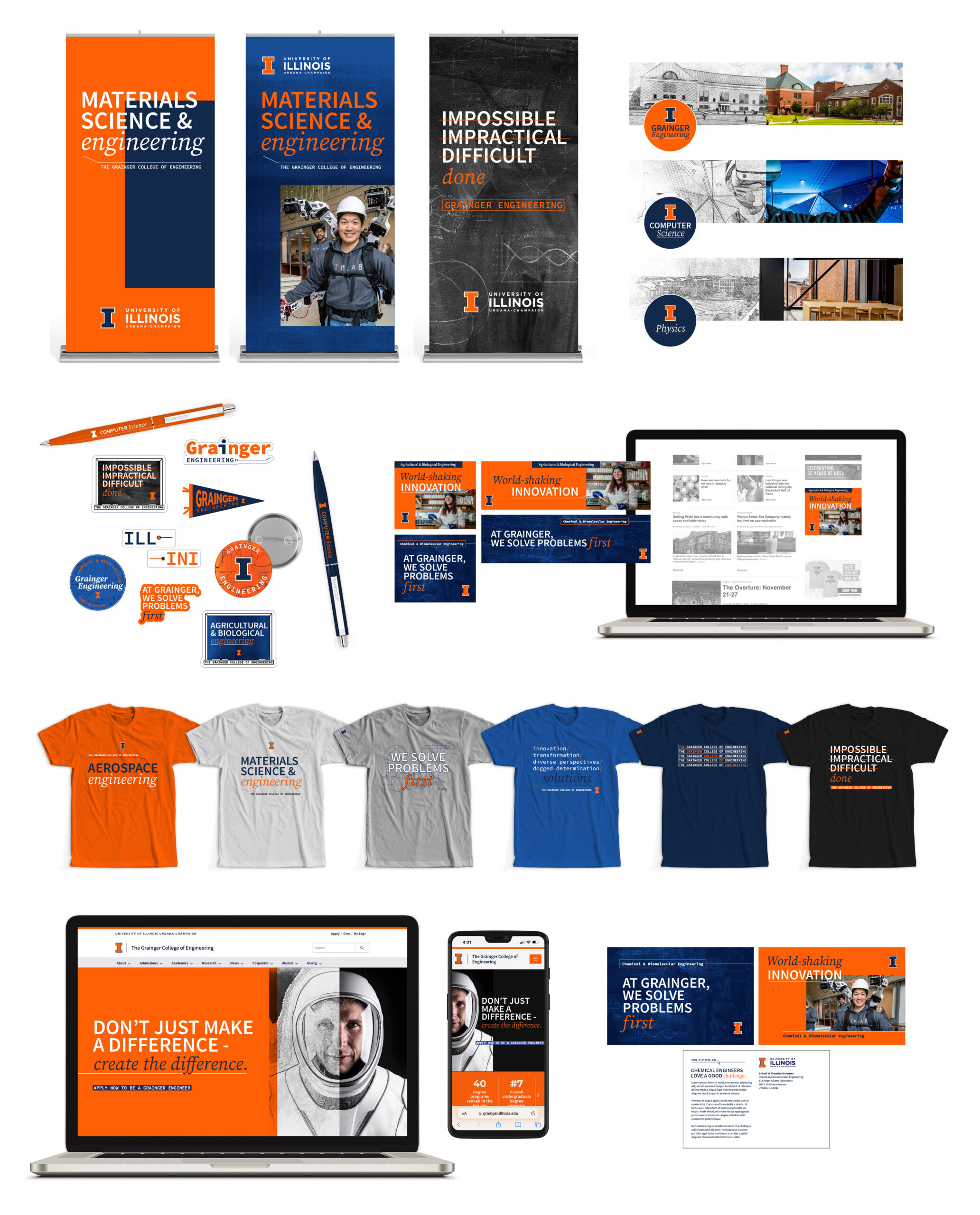 Expand a visual identity to create a cohesive, innovative, adaptable system for use across all units within The Grainger College of Engineering.