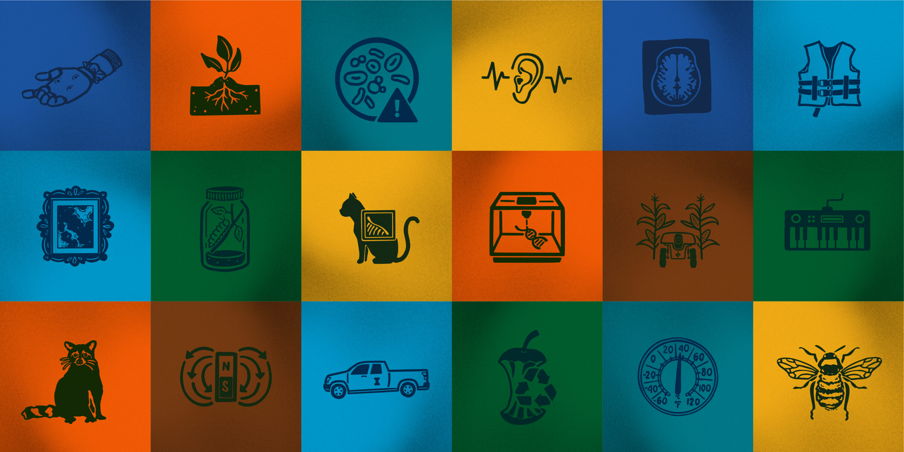 This was an ongoing process of collecting and creating design elements we repeatedly used across projects. I led the development of multiple asset libraries, art directing student designers, who played a crucial role in a hand-drawn illustration library generated from research-area inspiration, and a “stamps” library that paired photo references with graphic elements. These flexible resources allowed our team, and other marketing professionals, to communicate OVCRI’s broad research initiatives effectively and creatively.