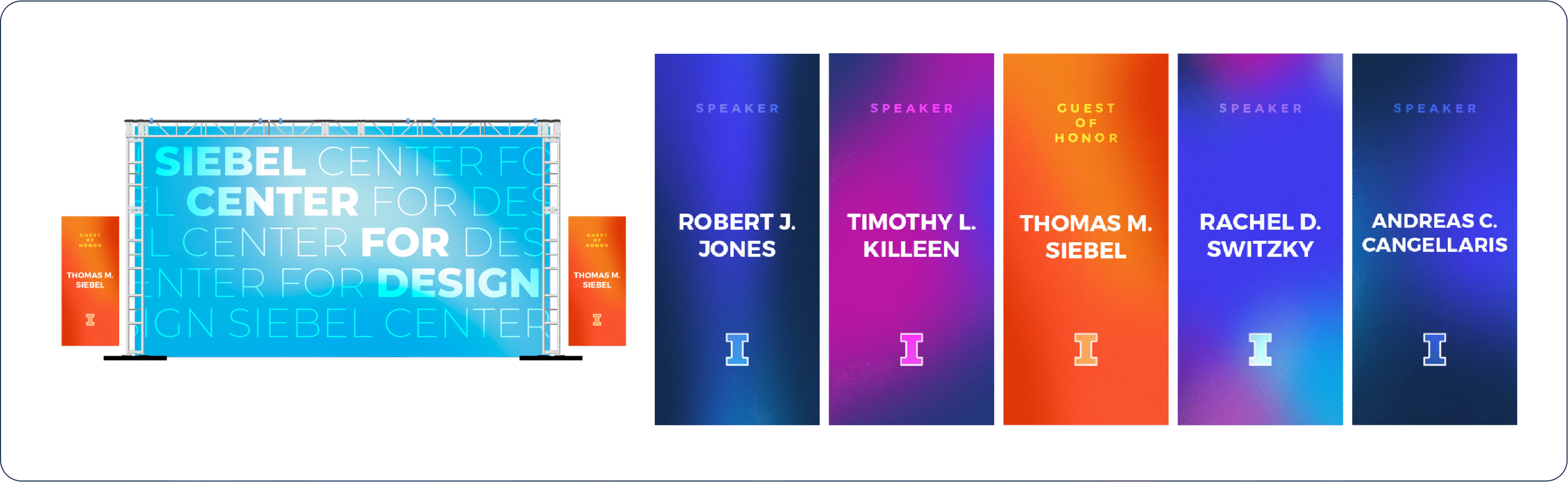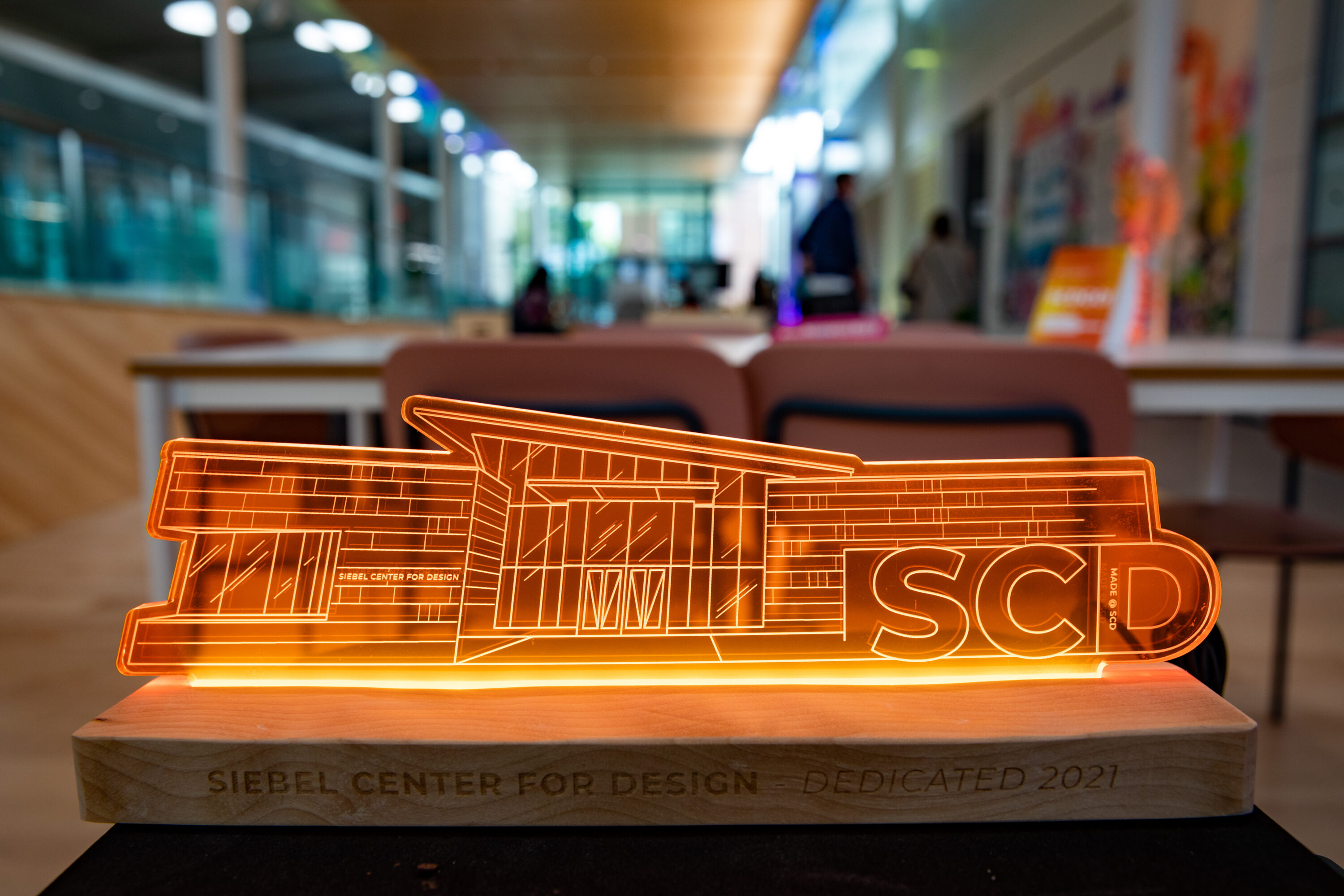 When I joined the team, the grand opening was one of the first major projects to start thinking about. Because the center’s visual identity hadn’t yet been fully developed, one challenge was to anticipate the brand direction and design an event experience that felt connected to what SCD would become. I created and refined visual concepts with the team, collaborated with event partners to explore creative ideas, and helped shape the experience through details like lighting, environmental graphics, and branded giveaways – such as a light-up replica of the building for those who contributed to bringing it to life on campus.